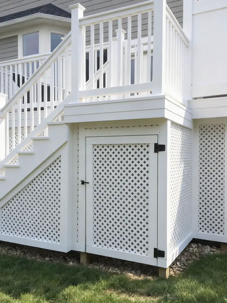 6. Crisp White Enclosed Lattice Skirting with Hidden Storage Access