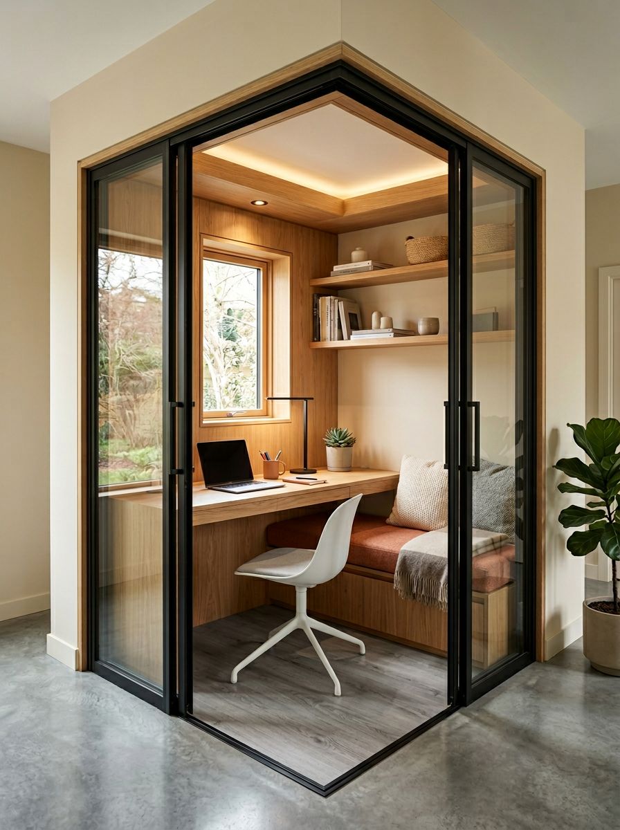 12. Compact Modern Office Pod With Built-In Desk Nook