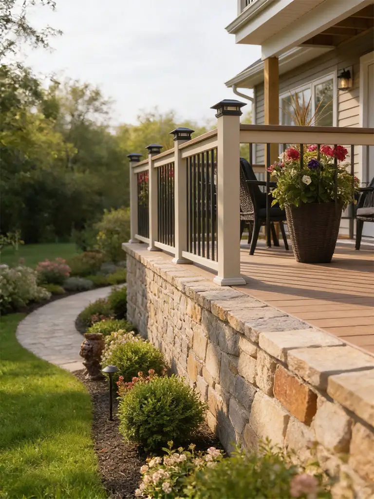 3. Elevated Deck with Stone Base and Clean Stair Transition